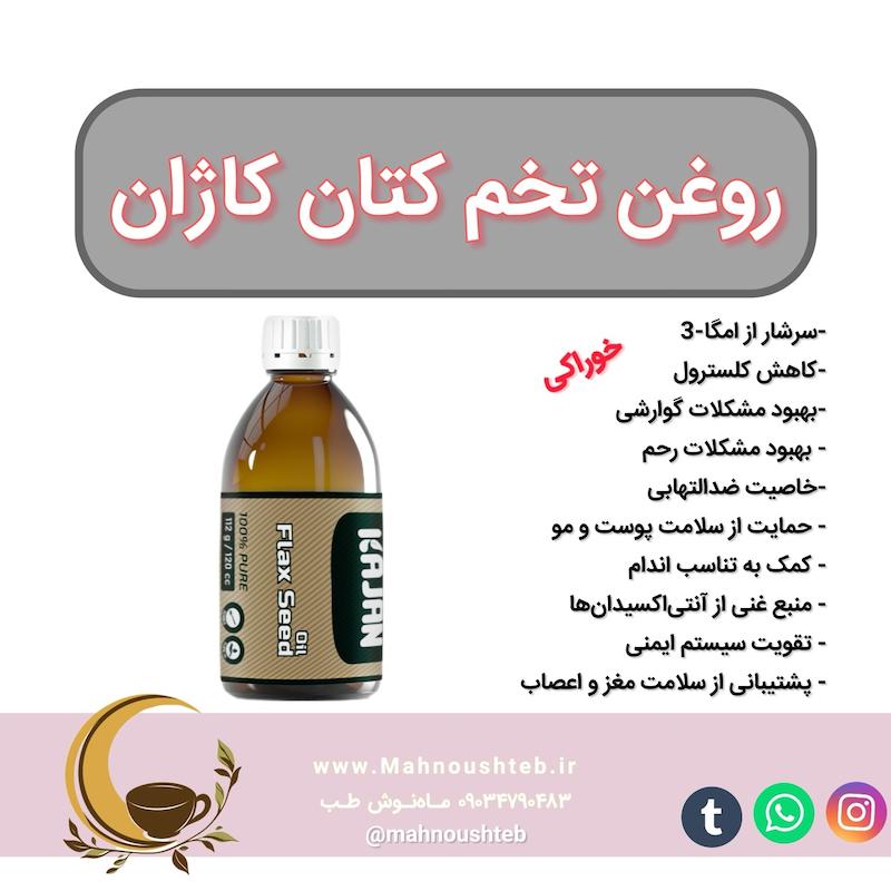 ( بعد از خرید این محصول پشتیبان مجله سلامتی ماهنوش، جزوه خواص روغن کتان کاژان و نحوه مصرف را برای شما ارسال میکند )